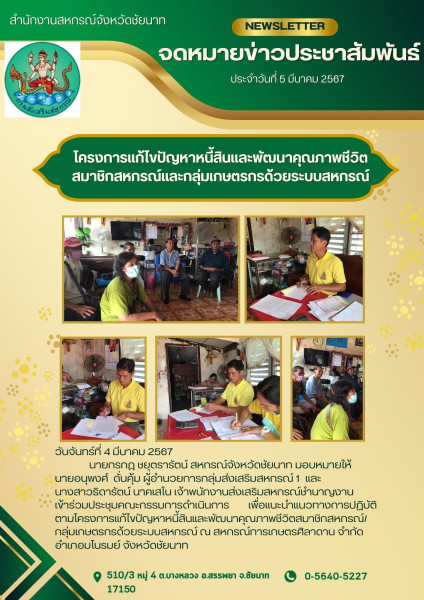 นายอนุพงศ์ ดั่นคุ้ม ผู้อำนวยการกลุ่มส่งเสริมสหกรณ์ 1 และนางสาวมนชยา นาสิงห์บุตร เจ้าพนักงานส่งเสริมสหกรณ์ เข้าร่วมประชุมคณะกรรมการดำเนินการเพื่อแนะนำแนวทางการปฏิบัติตามโครงการแก้ไขปัญหาหนี้สินและพัฒนาคุณภาพชีวิตสมาชิกสหกรณ์/กลุ่มเกษตรกรด้วยระบบสหกรณ์ ณ สหกรณ์การเกษตรศิลาดาน จำกัด อำเภอมโนรมย์ จังหวัดชัยนาท