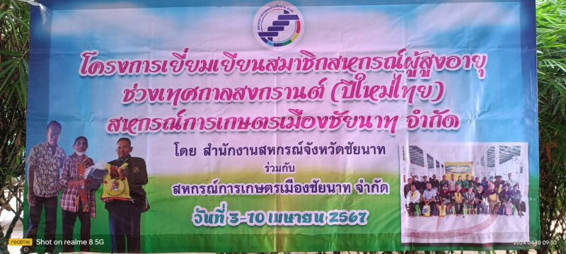 นายกรกฎ ชยุตรารัตน์ สหกรณ์จังหวัดชัยนาท ร่วมโครงการเยี่ยมเยียนสมาชิกผู้สูงอายุ ช่วงเทศกาลสงกรานต์ (ปีใหม่ไทย) สหกรณ์การเกษตรเมืองชัยนาท จำกัด พร้อมกับแจกข้าวสารและของใช้อื่น ๆ แก่ผู้ที่มีอายุ 70 ปี ขึ้นใป จำนวน 41 คน ประกอบด้วย สมาชิกบ้านท่าแก้ว บ้านหนองจอก บ้านวังเคียน บ้านหนองแค บ้านางลือ ณ ศาลาเอนกประสงค์ หมู่ 2 ตำบลนางลือ จังหวัดชัยนาท