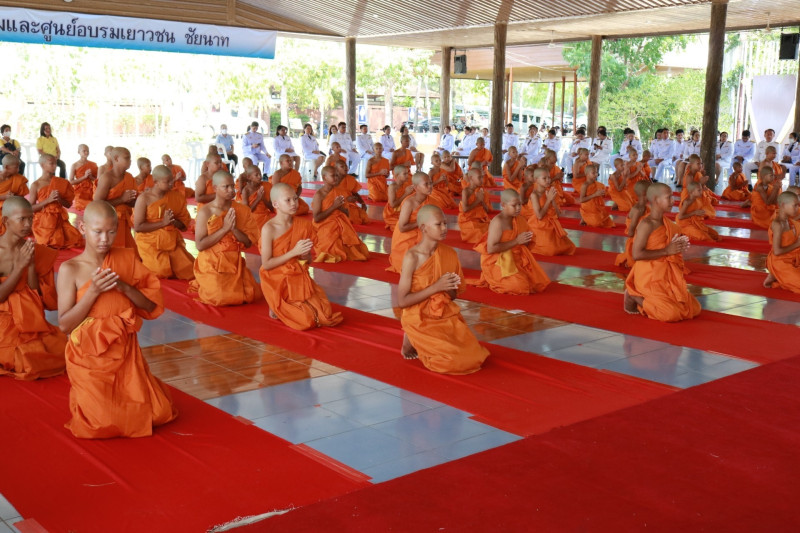 เพื่อถวายเป็นพระราชกุศลแด่พระบาทสมเด็จพระเจ้าอยู่หัว รวมถึงได้เปิดโอกาสให้เด็กและเยาวชนไทยทั่วประเทศได้แสดงความจงรักภักดี ความกตัญญูกตเวที และสำนึกในพระมหากรุณาธิคุณ และได้รับความรู้ในเรื่องหลักธรรมทางพระพุทธศาสนา ทั้งภาคทฤษฎีและภาคปฏิบัติ เพื่อเป็นการพัฒนาตนเองให้เป็นคนดีมีคุณธรรมจริยธรรมและศีลธรรม มีเด็กและเยาวชนเข้ารับการบรรพชา จำนวน 73 รูป ในการนี้ นายนที มนตริวัต ผู้ว่าราชการจังหวัดชัยนาท เป็นประธานในพิธี ท่านเจ้าคุณพระมงคลกิจโกศล รองเจ้าคณะจังหวัดชัยนาท เจ้าอาวาสวัดเทพหิรัณย์ เป็นประธานสงฆ์ และพระมหานคร จรณธมฺโม เจ้าคณะอำเภอเมืองชัยนาท เจ้าอาวาสวัดท่าช้าง เป็นพระอุปัชฌาย์
