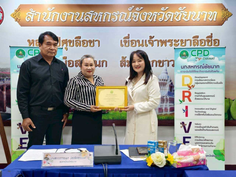 พร้อมกันนี้ สหกรณ์จังหวัดชัยนาทได้มอบประกาศนียบัตรแก่สหกรณ์และกลุ่มเกษตรกรดีเด่นระดับจังหวัด ประจำปี พ.ศ. 2568/2569 ได้แก่ 1) สหกรณ์ออมทรัพย์ตำรวจภูธรจังหวัดชัยนาท จำกัด 2) สหกรณ์การเกษตรทุ่งวัดสิงห์ จำกัด และ 3) กลุ่มเกษตรกรทำสวนวังไก่เถื่อน โดยมีประธานกรรมการและผู้แทนเข้ารับมอบประกาศนียบัตร เพื่อเป็นการยกย่องเชิดชูเกียรติและสร้างขวัญกำลังใจในการดำเนินงาน